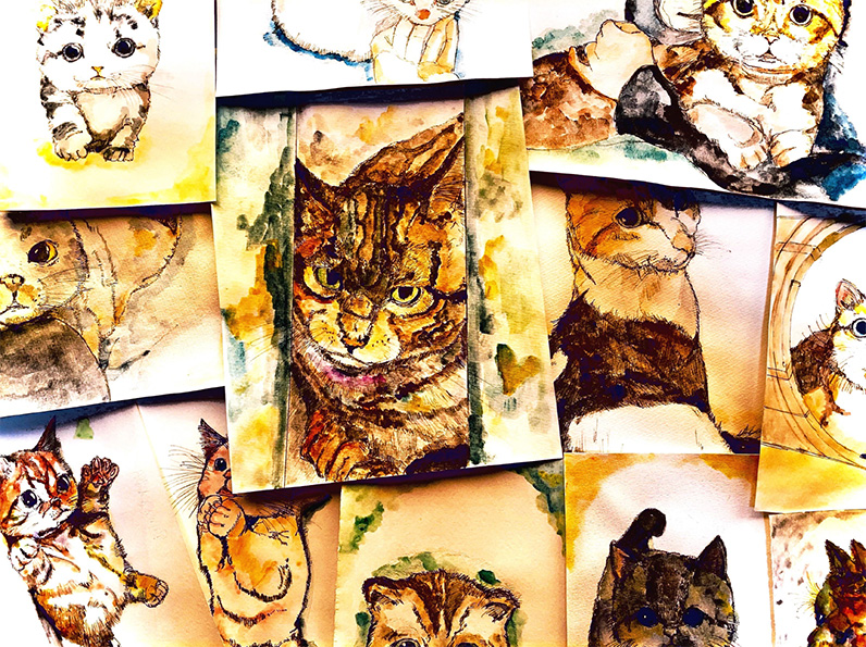 漫画家です。漫画家が趣味で描いた猫さんたちの水彩画!